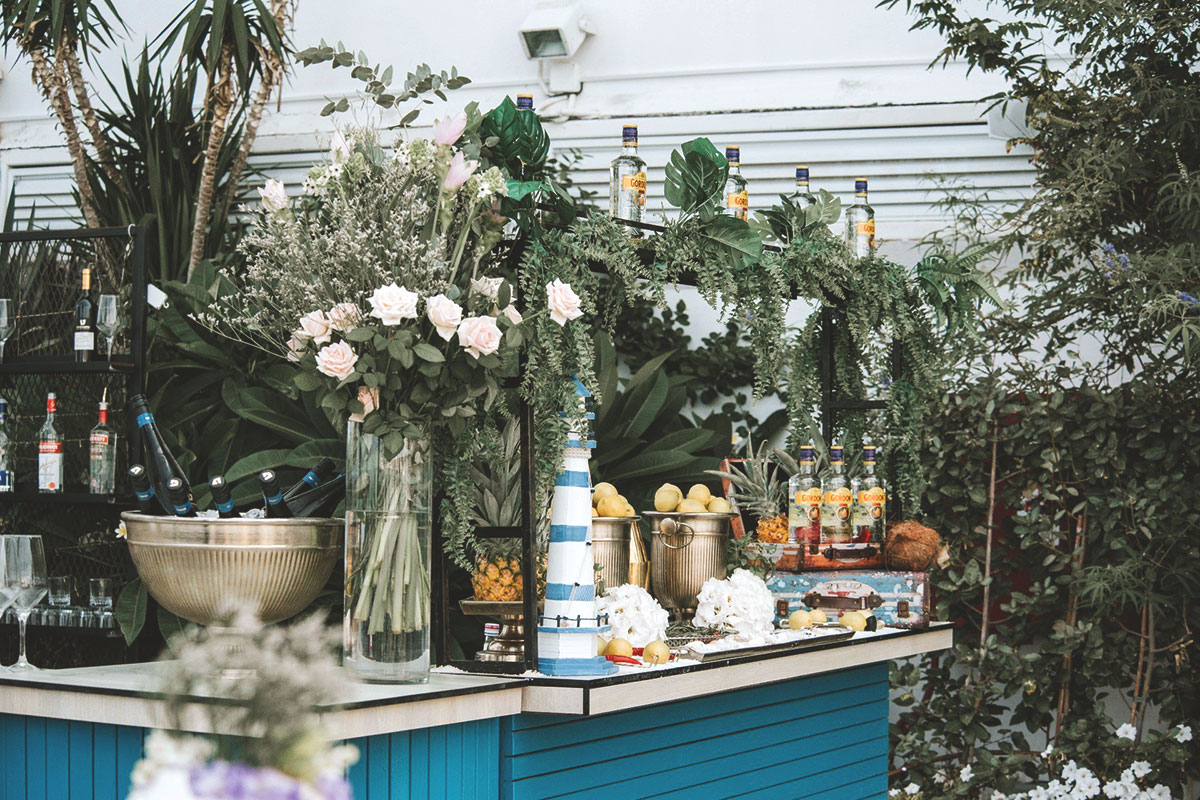 הבר ברמת גימור גבוהה ביותר עם משקאות איכותיים וקוקטיילים מרשימים, העיצוב מסוגנן בהתאם למיתוג האירוע והצוות תוסס ומרים אווירה.